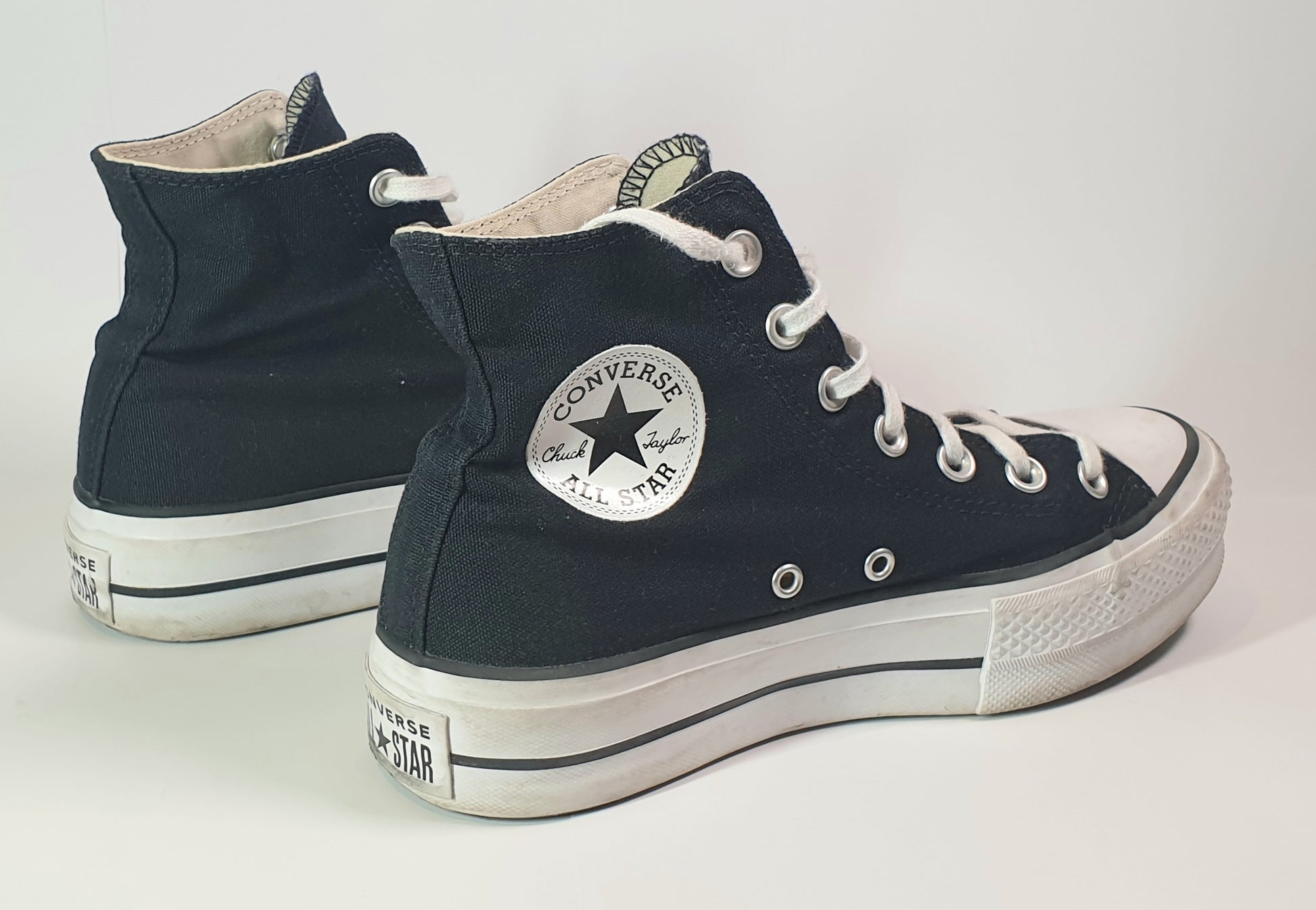 Upgrade your sneaker game with Converse Chuck Taylor All Star Lift High platform sneakers. The soft and durable black canvas upper pairs perfectly with the super chunky white midsole for a standout look. Stay comfortable and protected with the lace-up fastening, rubber toe cap, and Converse branding.