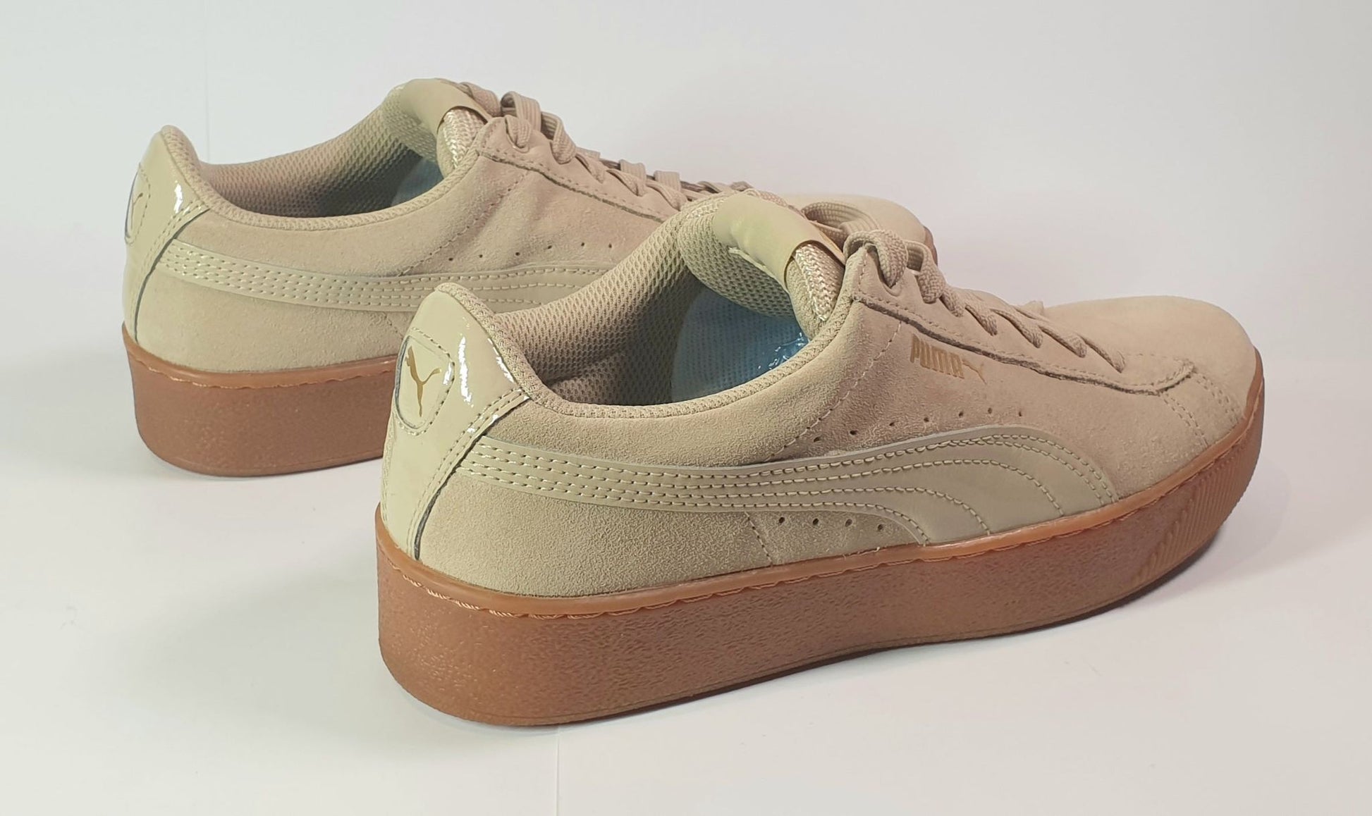 PUMA Vikky Platform 'Pebble' sneaker in a light brown suede