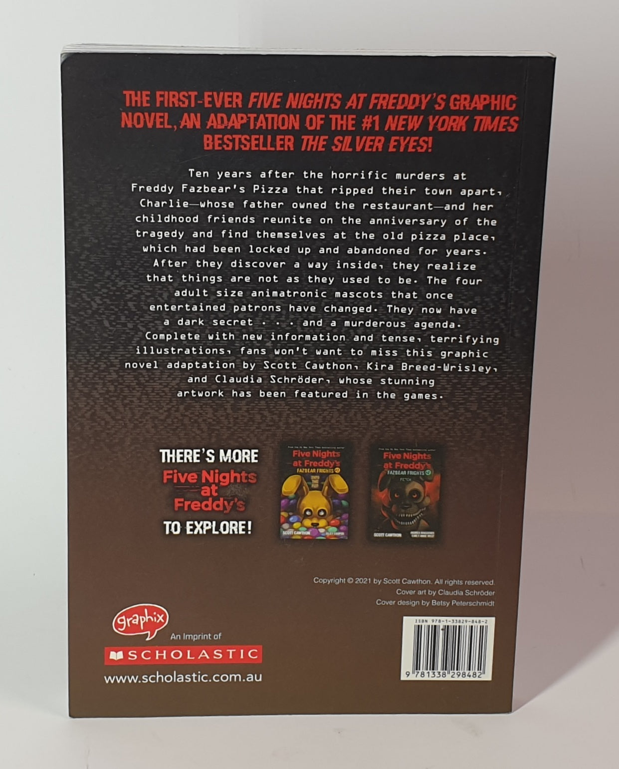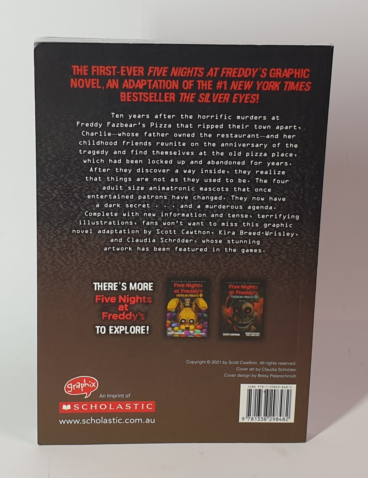 THE SILVER EYES plunges you into a chilling mystery where nostalgia turns to terror. Follow Charlotte as she returns to the abandoned Freddy Fazbear's Pizza with her childhood friends, drawn by unanswered questions surrounding a tragedy from a decade past. What begins as an investigation transforms into a fight for survival when the animatronic mascots reveal their sinister true nature. Uncover the dark secrets buried within those walls—the shocking truth behind the murders that haunted this place. Perfect for fans of psychological horror and supernatural suspense, this gripping novel will keep you guessing until the final page.